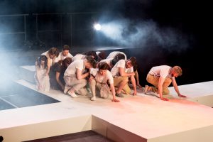 The disciples are at first blinded by the light as Jesus ascends to heaven ( from Risen! The Musical)