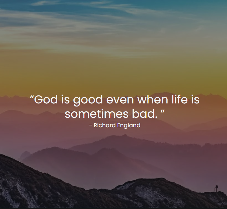 Richard England, the Vicar of Holy Rood Church, Stubbington once pointed out that we, in the West seem to expect to have a life that is epitomised by “Life, liberty and the pursuit of happiness”- this is our right and something is fundamentally wrong when we don’t get it. In other parts of the world, however people are much more realistic and accept that suffering is a part of this life and we should not be surprised when it happens. This does not mean that there is no God or that He does not care – it just means that things will go wrong and His promise is not to take bad things away but to stay close to us through life’s challenges and His promise is not to take bad things away but to stay close to us through life’s challenges and sufferings.