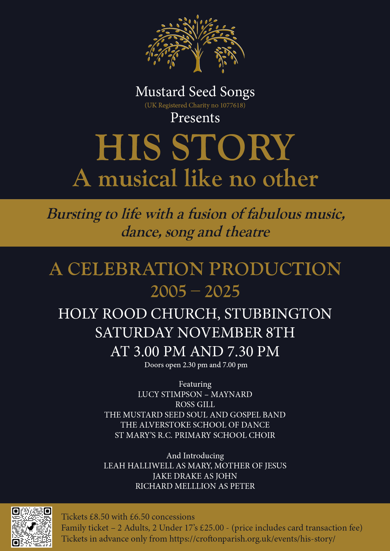 Only 2 weeks and 2 days before the 20th anniversary of our musical “His Story” on Saturday, November 8th – performances at 3.00 pm and 7.30 pm